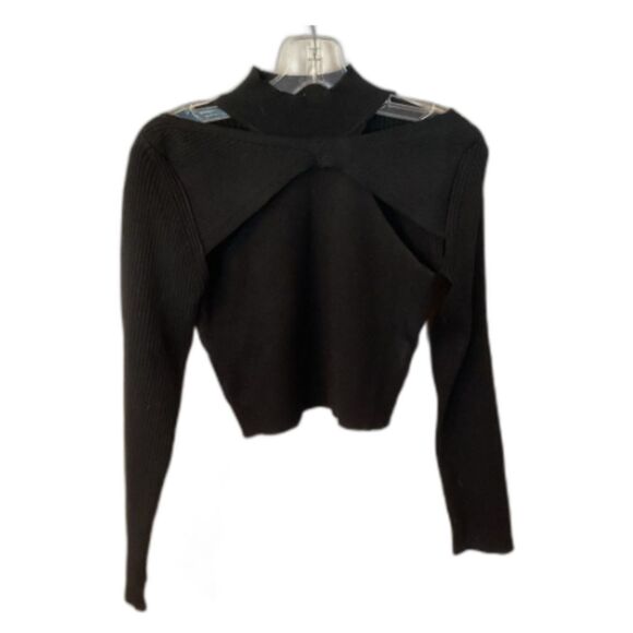 LARGE BLACK RIBBED MOCK NECK CRIOPPED COLLARBONE CUTOUT SWEATER