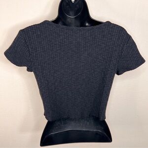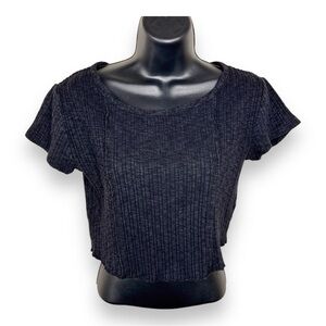 LARGE DARK GREY BLACK JUNIORS CROPPED TOP CROPTOP KNIT STRETCH