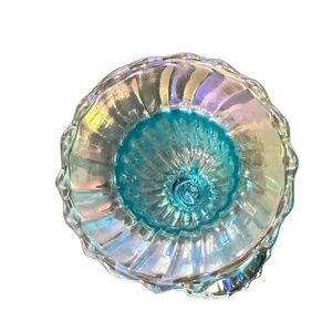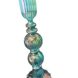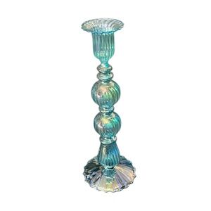 LARGE EGYPTIAN REVIVAL CANDLESTICK LIGHT BLUE SHINY / LiIGHT GLASS