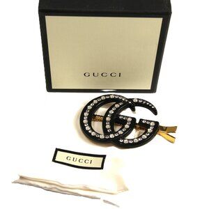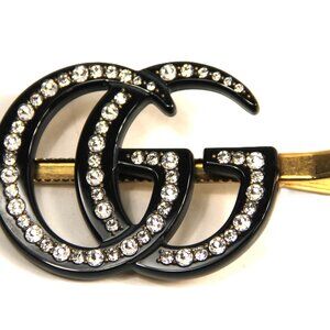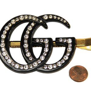 Authentic GUCCI hair clip with original box & dust bag. Over 3" comprised of black plastic with rhinestone accents. See the penny for size comparison. Excellent condition. Signed as per photo.