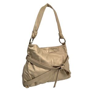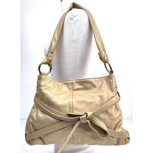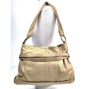 LARGE Goldenbleu GOLD GENUINE LEATHER PINK SUEDE LINED SHOULDER BAG HOBO