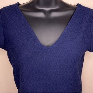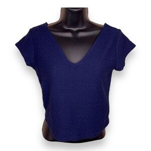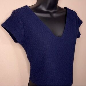 LARGE JUNIORS SO NAVY BLUE TEXTURED CROP TOP STRETCH VNECK