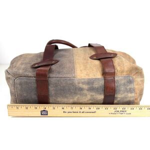 LARGE KiliKili BROWN BEIGE GENUINE LEATHER CANVAS SHOULDER BAG HANDBAG TOTE HOBO