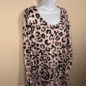 LARGE LEOPARD PRINT TUNIC DRESS TOP RUFFLE LONG SLEEVE STRETCH BLACK CREAM/PINK