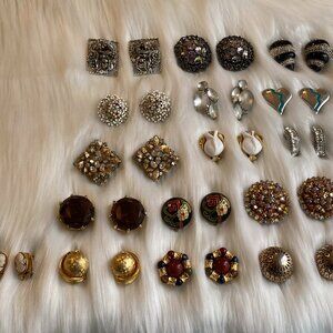 Collection of sixteen pair of mostly signed clip & screw-back earrings. Previously listed individually.