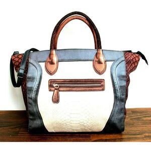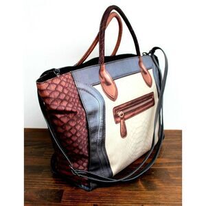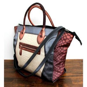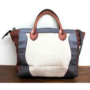 LARGE MOUSSE COLORFUL PRINT NYLON CANVAS ZIP TOP TOTE SHOULDER BAG HANDBAG BOHO
