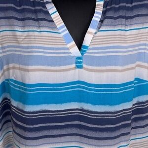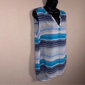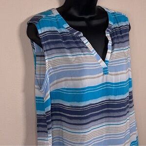 LARGE NORTHCREST BLUE STRIPED SLEEVELESS TOP VNECK LIGHTWEIGHT OMBRÉ