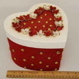 LARGE SPARKLY HEART GIFT BOX WITH GLITTER ROSES 8"