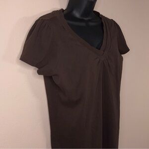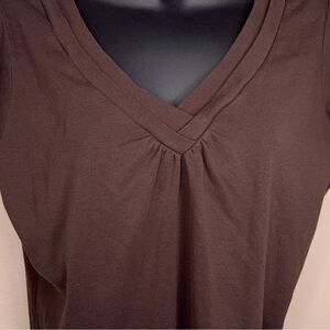 LARGE ST JOHNS BAY BROWN SHORT SLEEVE TOP PUFF SLEEVE VNECK COTTON