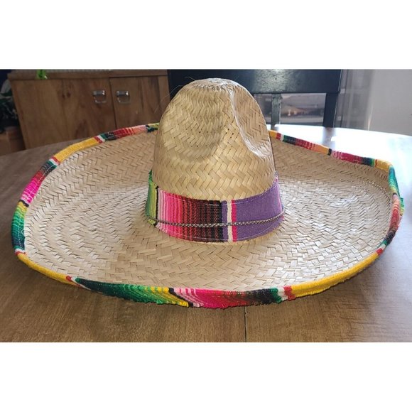 LARGE STRAW MEXICAN SOMBRERO HAT 20 Inch, Opening Is 7½ X 6¾ Inches