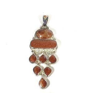 The Sajen Offerings sandstone druzy pendant is a distinctive piece of handcrafted jewelry that combines natural beauty with artistic design. This pendant features a sandstone base adorned with a druzy quartz overlay, creating a shimmering effect due to the tiny crystals covering the stone’s surface. Sajen, known for its unique and artisanal jewelry, often incorporates such natural gemstones into their designs, emphasizing both aesthetic appeal and craftsmanship.