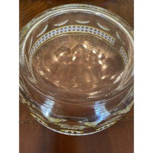 This hard to find vintage Arcoroc France serving bowl with the white cane and yellow trim and the gold rim and thumbprint pattern is an absolute classic design that's both extremely functional and a perfect addition to your vintage serving pieces!