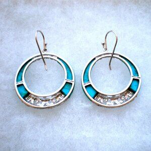 LARGE Vintage Artisan Designer Sterling Silver 925 Turquoise Dangle Earrings