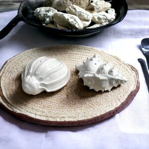 LARGE WHITE CERAMIC CONCH SEA SHELLS SALT PEPPER NAUTICAL OCEAN THEME DÉCOR