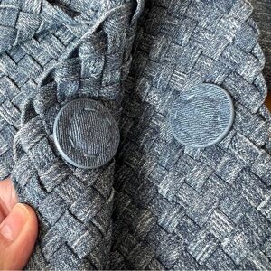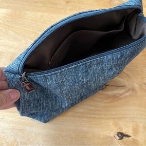 Steel blue color, large woven tote, magnetic closure, double handles, matching cosmetic - organizer bag wit zip closure.