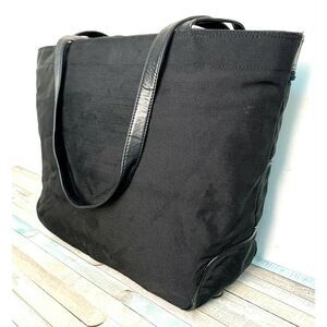 LARGE ST DENIS BLACK NYLON BLACK LEATHER TRIM HANDLES TOTE SHOULDER BAG HANDBAG