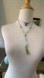 The lariat part of the necklace is entirely beaded and has a gold tone feather pendant on the end.