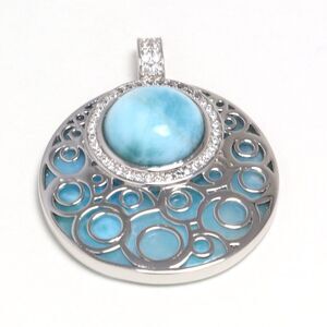 This vintage necklace is made with 100% natural genuine rare Larimar stones from Dominican Republic, Lab Created Cubic Zircon and solid 925 sterling silver w/ Rhodium gold plating for better quality and prolonged shine!