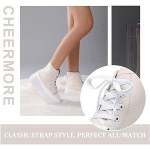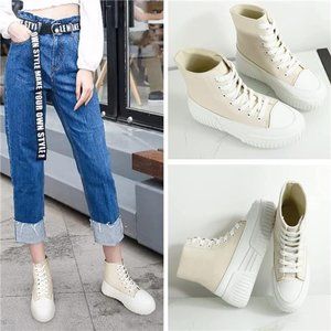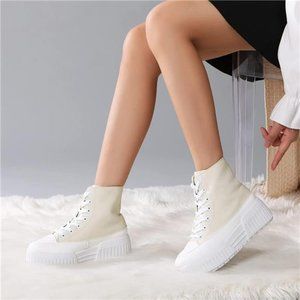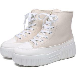 LARIUFH High Top Canvas Lace up White Black High Platform Sneakers Casual