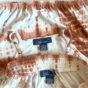 LARK + GREY 2-PIECE CROP TOP MIDI SKIRT WHITE/BURNT ORANGE TIE-DYE DRESS NEW SzS