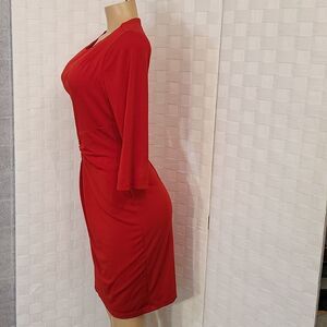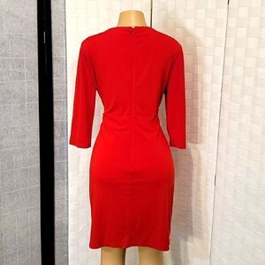 LARK&RO 3/4 OF SLEEVE INVISIBLE BACK ZIPPER CLOSURE WOMEN"S DRESS SIZE XLARGE COLOR RED ROUNDNECK LINE MADE WITH SHELL 96%POLYESTER 4%SPANDEX LINING 100%POLYESTER THIS ITEMS IS PRE-OWNED EXCELLENT CONDITION WITH ONLY LIGHT SIGNS OF WEAR IF ANY CHECK THE PICTURES