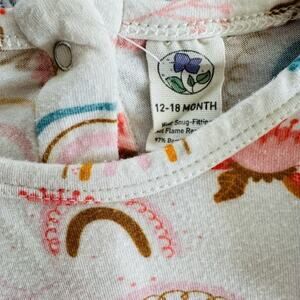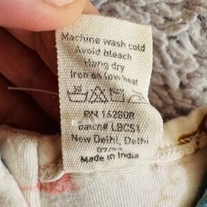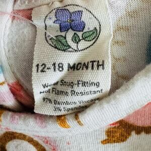 LARKSPUR BABY 97% bamboo viscose and 3% spandex ribbon print romper outfit size 12-18 m. There is some light wear but lots left. Perfect for summer! Sustainable bamboo fabric.