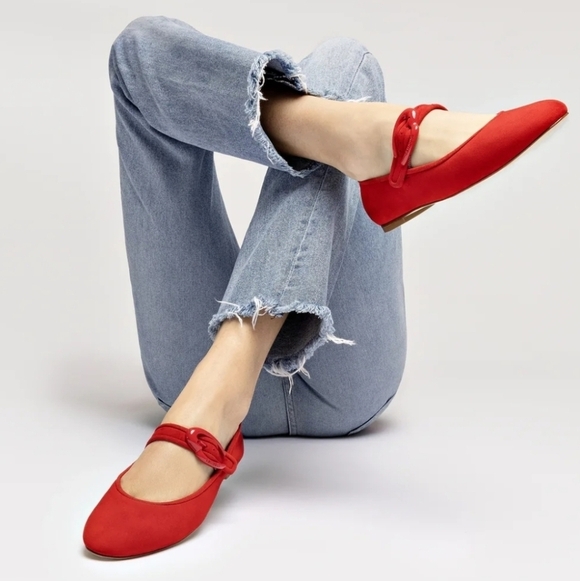❤️🔹️LARROUDE 🔹️Handmade In Brazil Suede Scarlet Suede Verona Ballet Flats