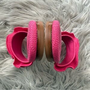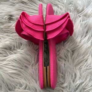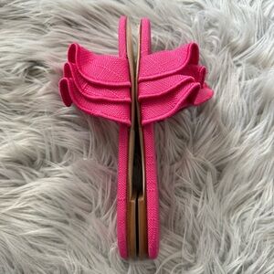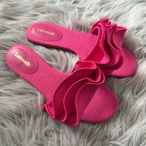 LARROUDE Ivy Ruffle Slip On Mule Flat Sandals in Pink Raffia Size 5 NWB