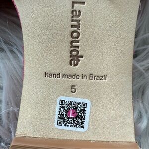 LARROUDE Ivy Ruffle Slip On Mule Flat Sandals in Pink Raffia. Size 5. NWB