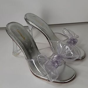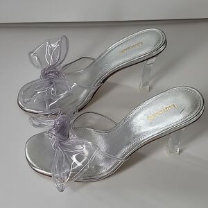 LARROUDE Mariah Mule bow sandals Clear Silver sz 7.5