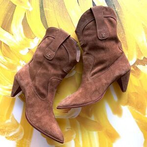 LARROUDE Thelma Suede Mid Calf Western Boots (Sz 11)