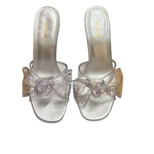 LARROUDE Mariah Heel in Vinyl Clear Kid Metallic Silver NWB Size 8 1/2