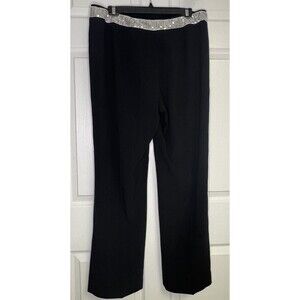 LARRY LEVINE Pants Size 14 Black Silver Sequin Waistband Wide Leg Soft Slacks