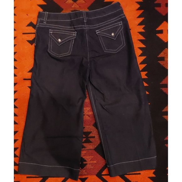 LARRY LEVINE Women's Wide Leg Cropped Stretch Black Jeans Contrast Stitch. Sz 10