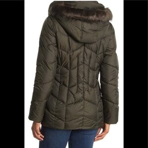 LARRY LEVINE faux hooded puffer olive green jacket/women size M