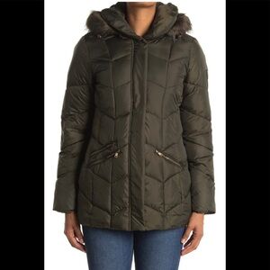 Faux fur trim on the hood in the quilted insulated construction makes for the perfect winter coat.