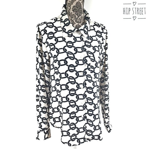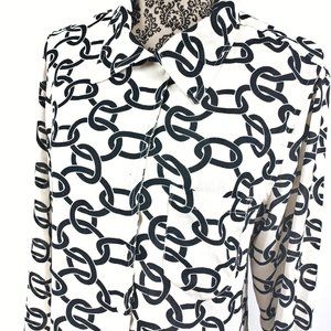 LARSEN GRAY LS Crepe Chiffon Button Front Chain Print Blouse Top L