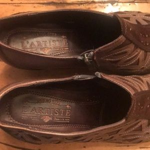 Brand new never worn L’ARTISTE brown woman’s booties. Size 39 (8 1/2). Side zipper.
