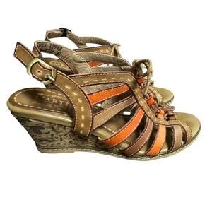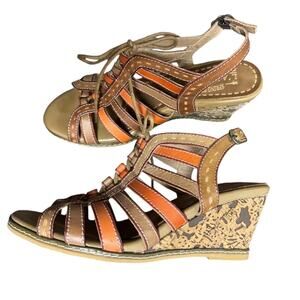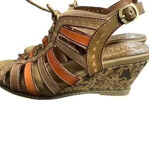 L'ARTISTE Quinne Strappy Slingback Wedge Sandals Tan Size 39 /US 8