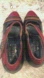 Two tone stacked chunky wood block heels with the inside of the heel covered in leather.