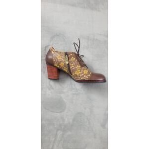 L'ARTISTE SPRING STEP OXFORD Lace Up EUR 41 Brown leather Floral Heel Shoes Zip