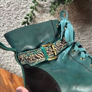 Step out in style with these chic teal and black ankle boots. Perfect for adding a pop of color to any outfit.