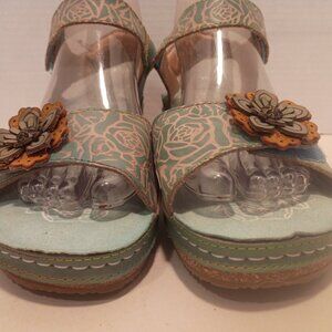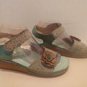 L'ARTISTE by Spring Step "Cuteness" Sz 9US/40EU Embossed Leather Sandals