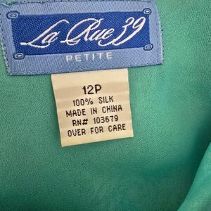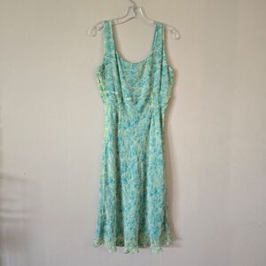 LA RUE 39 Floral Blue and Green Midi Dress Size 12P Y2K Fairycore 100% Silk