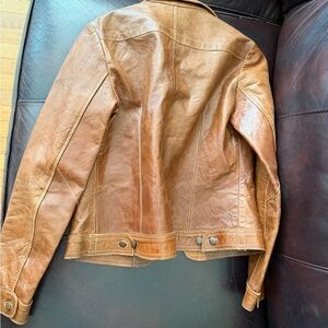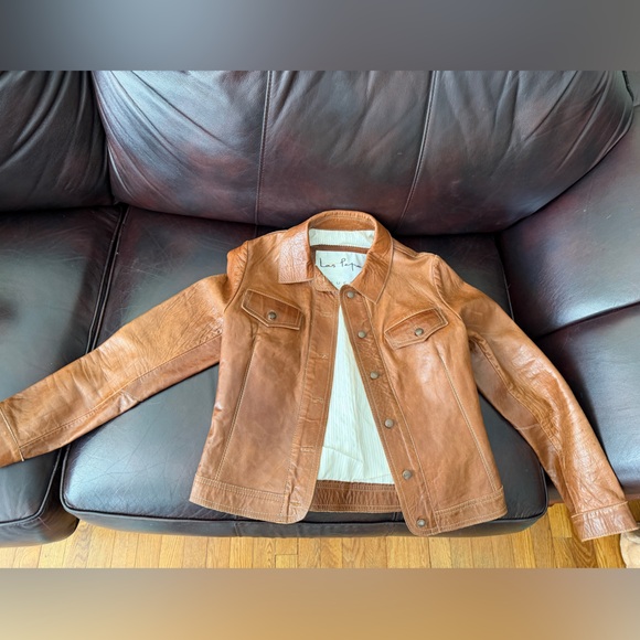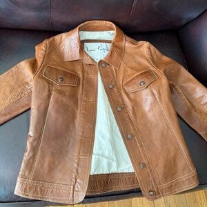 Amazing vintage LAS PEPAS leather jacket best fit for a xsmall US—-has signs of wear but no tears or visible damage