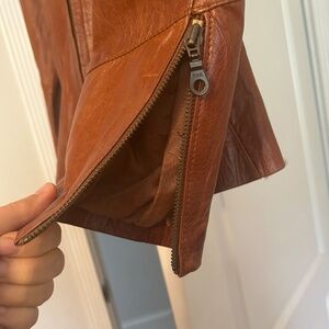 This jacket is in great condition as it was only worn once or twice. This jacket zips in the front and on the sleeves. It has a fitted look. I purchased it in Argentina.