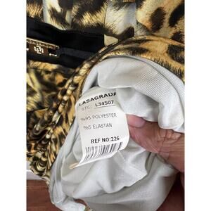 LASAGRADA Leopard Animal Print Flutter Sleeve Belted Pleated Dress EU 44 US 8