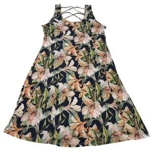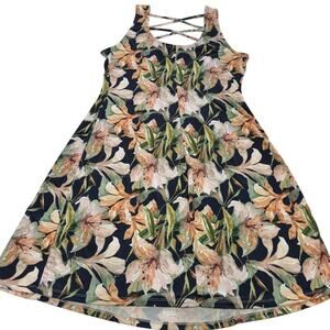 LASCANA Dress Womens 8 Navy Blue Floral Strappy Crisscross Back A-Line Sundress
