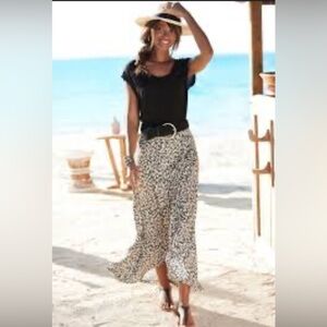 LASCANA Maxi High-Low Wrap Style Skirt in Black and Cream Size 38 EU Size 6 US