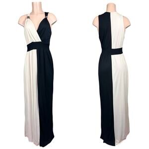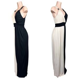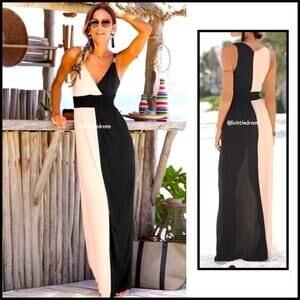 LASCANA Sleeveless Black & Creamy Beige Colorblock Maxi Dress SZ M $75